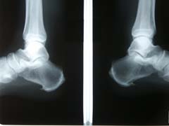 また、レントゲンを撮ってみると踵の骨のところに棘のようなものがありそれが原因で痛みがでている時があります。