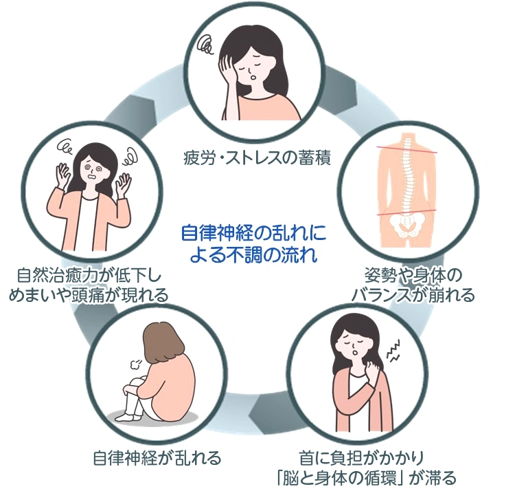 その結果、自律神経が乱れ、身体全体の調和が崩れてしまいます。