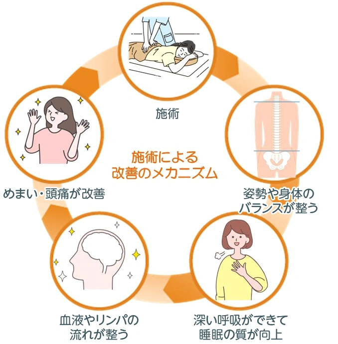 自律神経が整うことで、自然治癒力が高まり、「めまい」「頭痛」「首の重さ」が起こりにくい、循環のよい身体へと変わっていきます。
