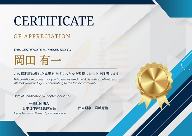 また、自律神経整体協会の講習を修了しており、原因不明の頭痛やめまいにも専門的な視点で対応いたします。