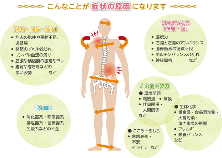 症状が出ている部分だけにフォーカスすると、本当の原因を見落としてしまったり回復に時間がかかったりしてしまいます。